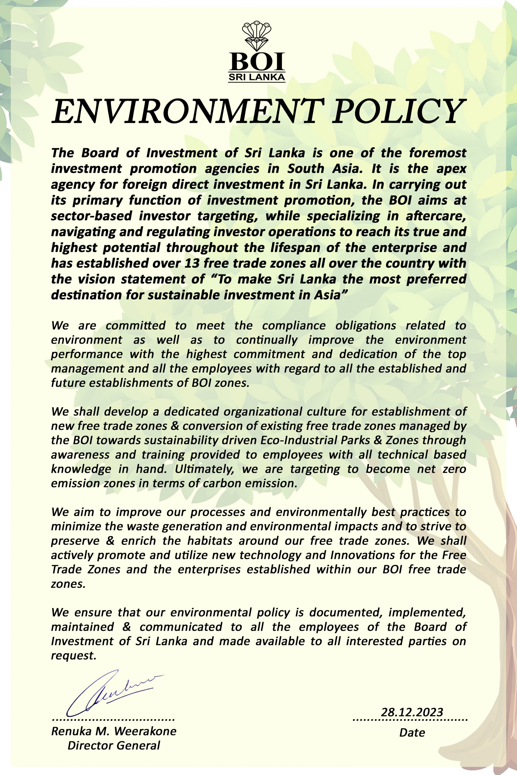 Downloads Investment Guidelines Investment Guidelines Investment Guidelines - English Investment Incentives - English BOI Publications Annual Reports Annual Report - 2022 Annual Report - 2021 Annual Report - 2020 Annual Report - 2019 Annual Report - 2018 Annual Report - 2017 Labour Standard and Employment Relation Manual Labor Standards & Employment Relations Manual - BOI EFC Labor Manual - EMPLOYMENT AND INDUSTRIAL RELATIONS GUIDE Employee's Council Guidelines Environmental Clearance Information Documents Environment policy of boi ENVIRONMENTAL NORMS Environmental protection license (EPL) Legal Aspects Investor Services Investor Services Banking Guid Sampath Bank Brochures & Leaflets Market Access Indo - Sri Lanka FTA Pakistan - Sri Lanka FTA Benefits Under EU GSP+ Srilanka Thailand fta Sectors Auto Components Sector Textile Manufacturing Zone eraur Apparel & Textile Sector Agro Processing Sector IT Sector RUBBER MANUFACTURING Sector Real Estate Sector Chemical Sector Renewable Energy Sector Tourism Sector BOAT MANUFAC. & SHIP BUILDING pharmaceutical Sector Electronic and Electrical Sector General Investment guide leaflet - english Investment guide leaflet - chinese Investment guide leaflet - japanese Investment guide leaflet - korean Procument Plan Procument Plan 2023 Procument Plan 2023 Procument Plan 2024 Procument Plan 2024 Procument Plan 2025 Procument Plan 2025