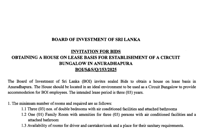 OBTAINING A HOUSE ON LEASE BASIS FOR ESTABLISHMENT OF A CIRCUIT BUNGALOW IN ANURADHAPURA More…