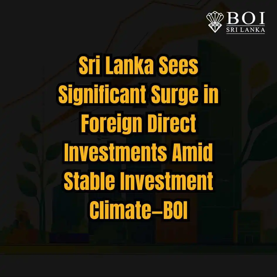 The Board of Investment (BOI) of Sri Lanka announced an increased inflow of Foreign Direct Investment (FDI) to the country in comparison to the previous year, consolidating the stable and investor-friendly economic environment.
